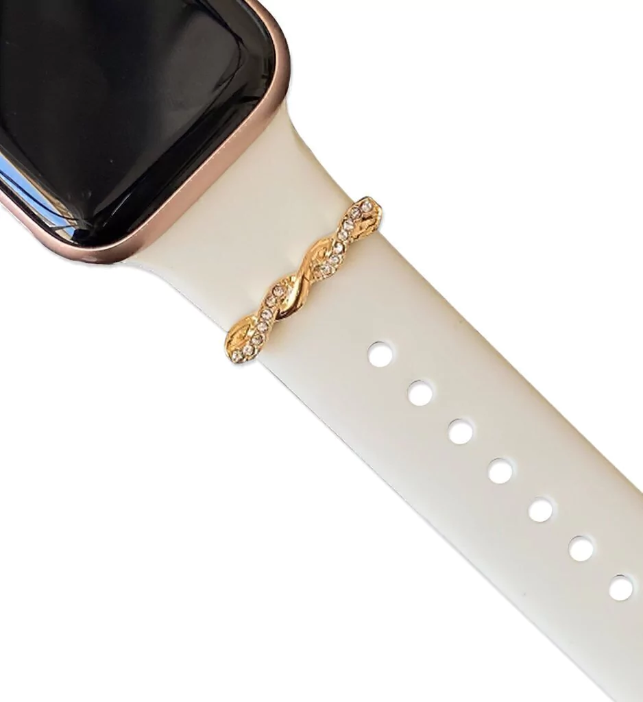 Charm Anel Strass Aço Serpente Compatível com Pulseiras Apple Watch