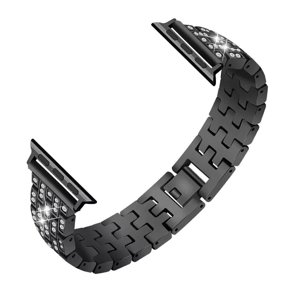 Pulseira Aço Elos Brilhos em Listras Preta Compatível com Apple Watch
