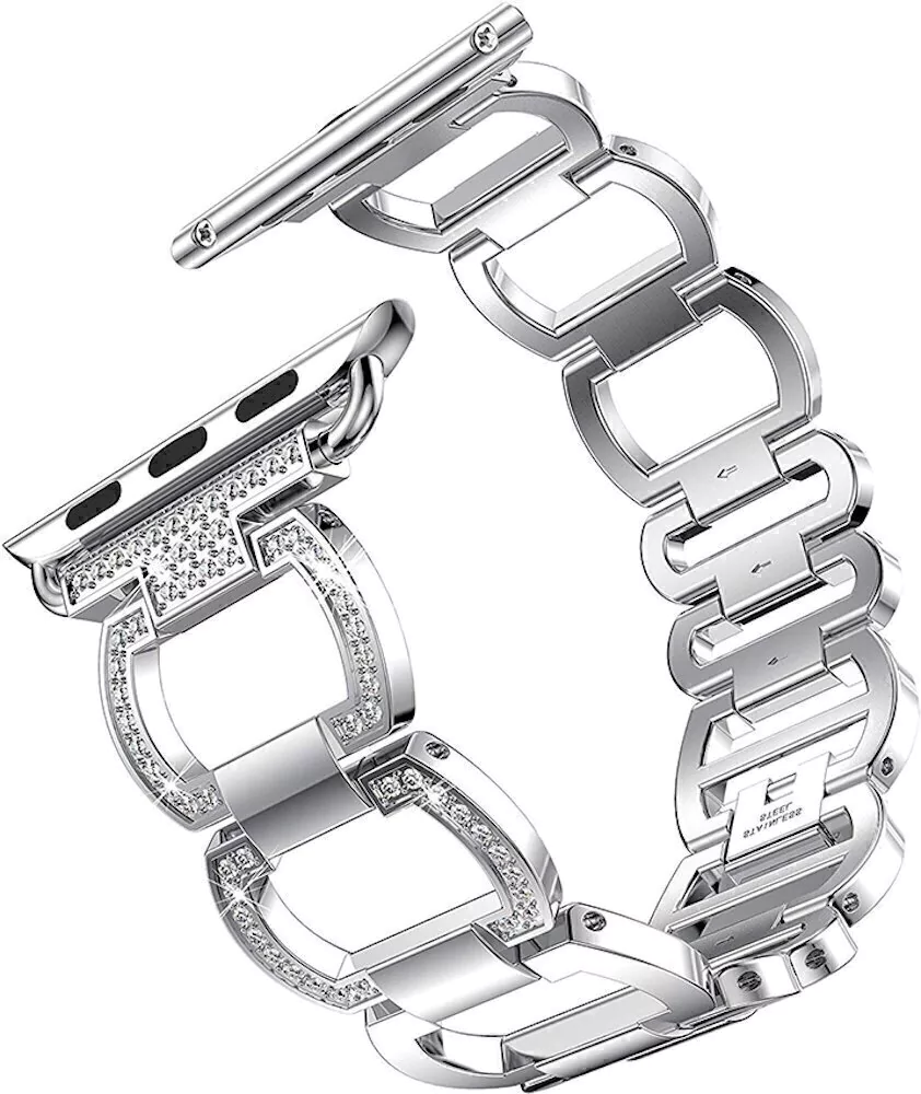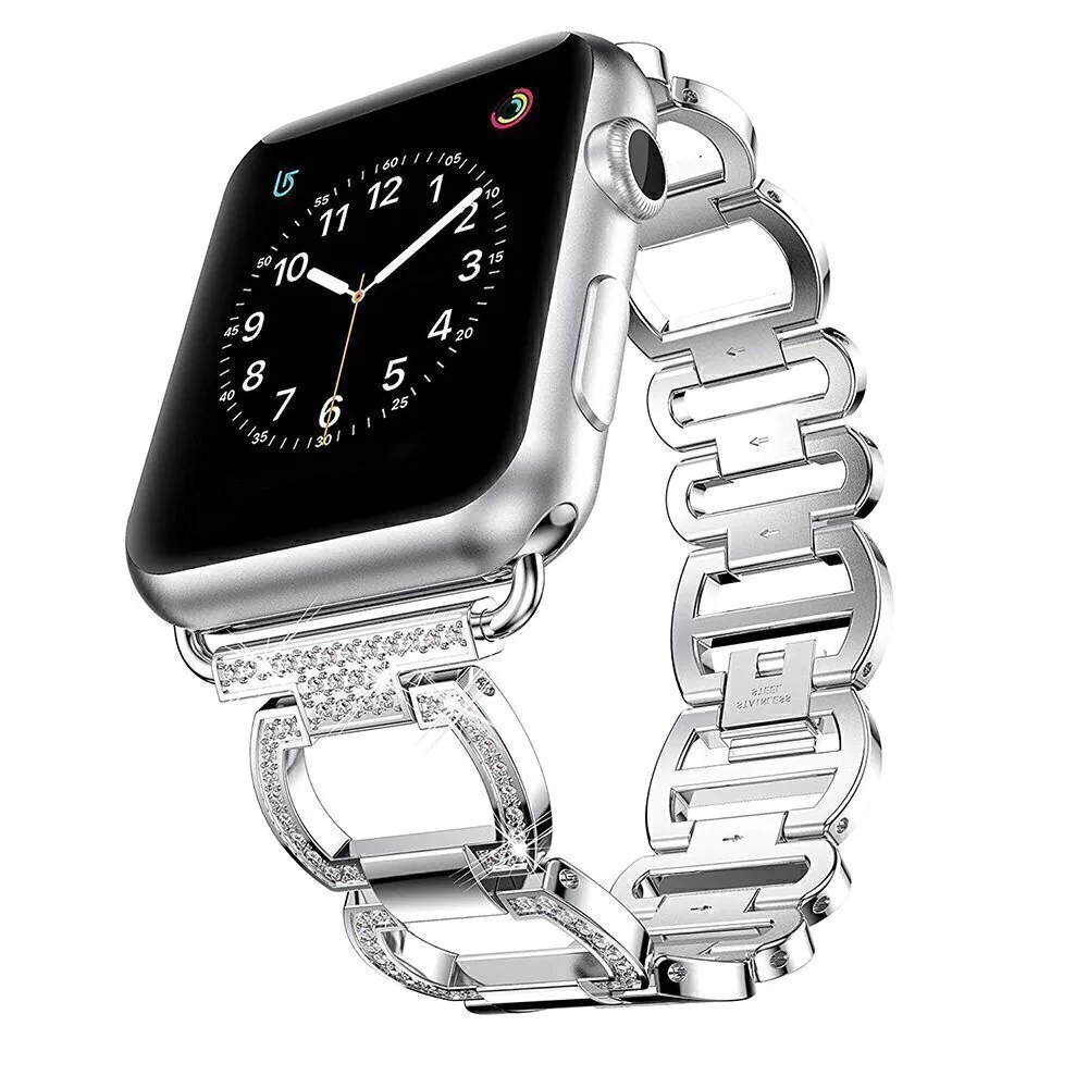 Pulseira Aros Strass Prata Aço compatível com Apple Watch