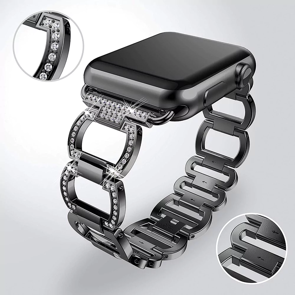 Pulseira Aros Strass Preta Aço compatível com Apple Watch