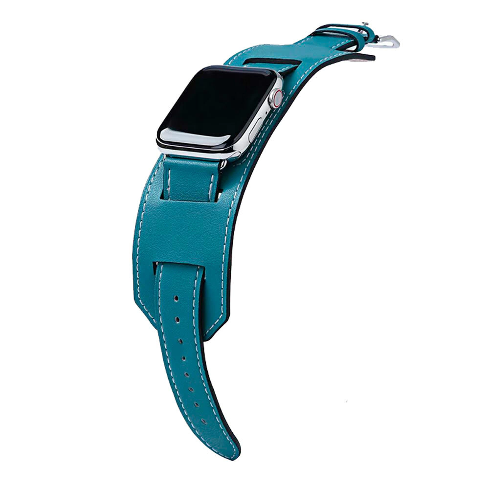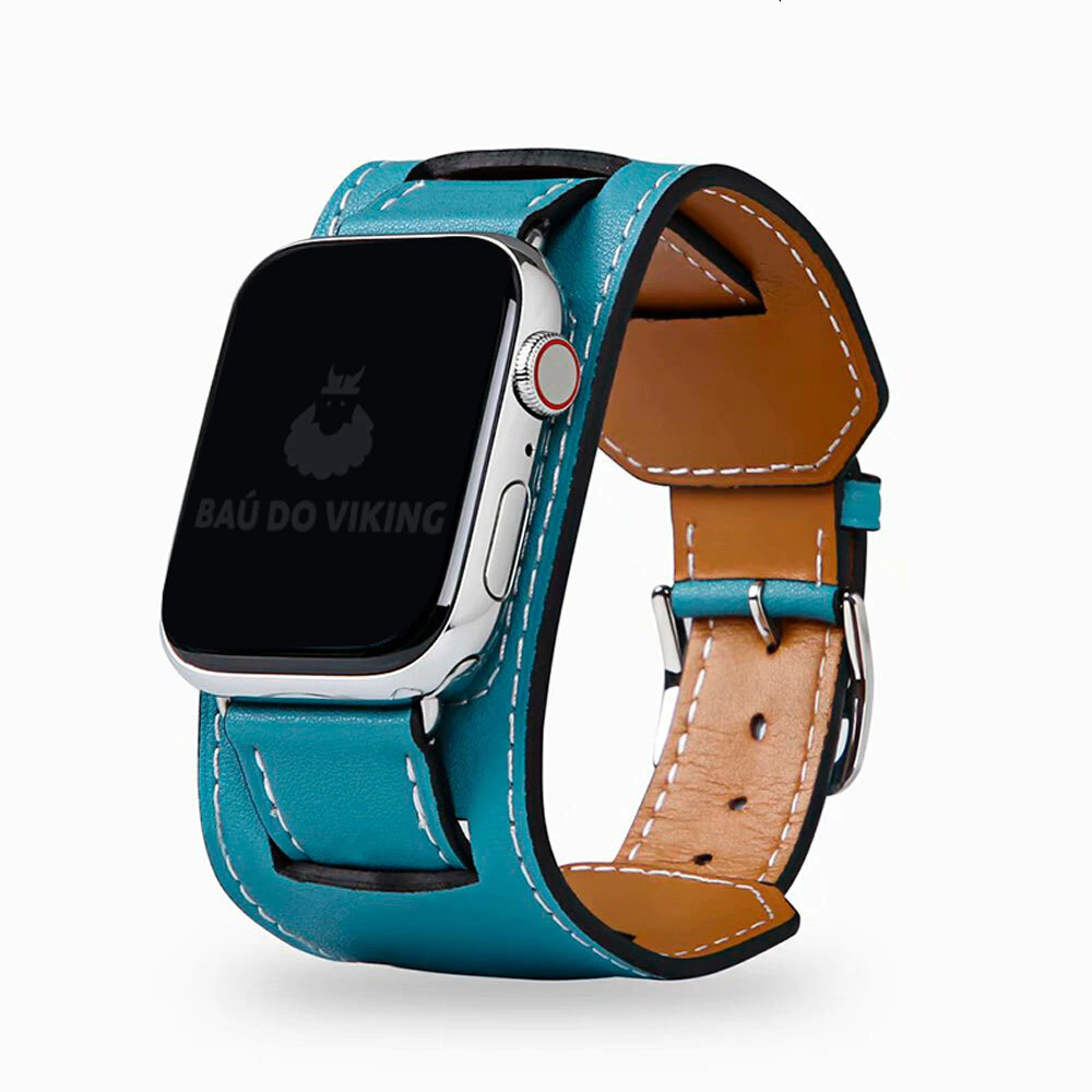Pulseira Couro Bracelete Cuff 2 em 1 Azul Compatível com Apple Watch