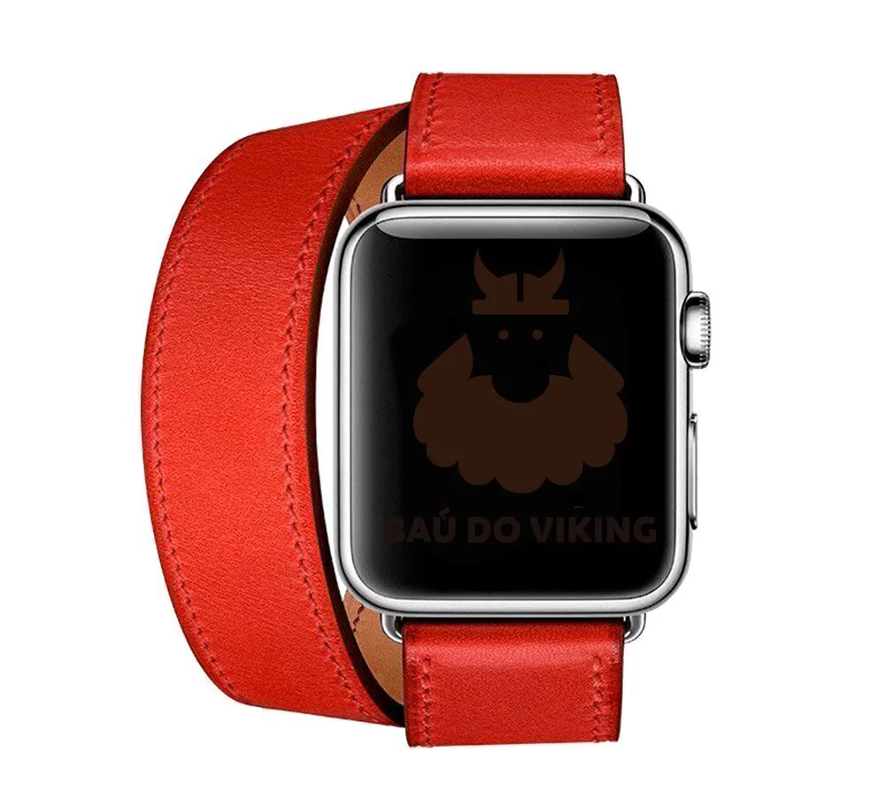 Pulseira Couro Duas Voltas Double Tour Vermelho Compatível com Apple Watch